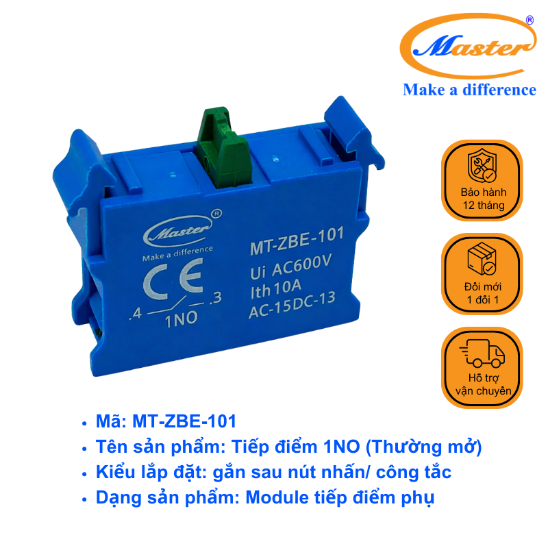 Với thiết kế dạng module nhỏ gọn, MT-ZBE-101 dễ dàng lắp ghép phía sau nút nhấn Master mà không cần thay đổi kết cấu tủ điện. Đây là giải pháp tối ưu cho các hệ thống điều khiển yêu cầu nhiều tín hiệu NO nhưng vẫn đảm bảo tính gọn gàng, an toàn và chuyên nghiệp.